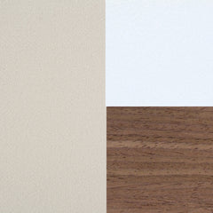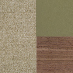 Feature Finish, Fabric Seat Flax, Leather Back Ghiaccio & Walnut Wood