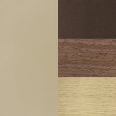 Feature Finish, Leather Beige, Fabric Faux Suede Brown, Walnut Wood & Medium Brushed Antique Brass
