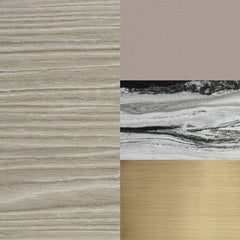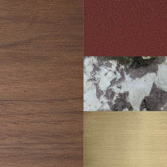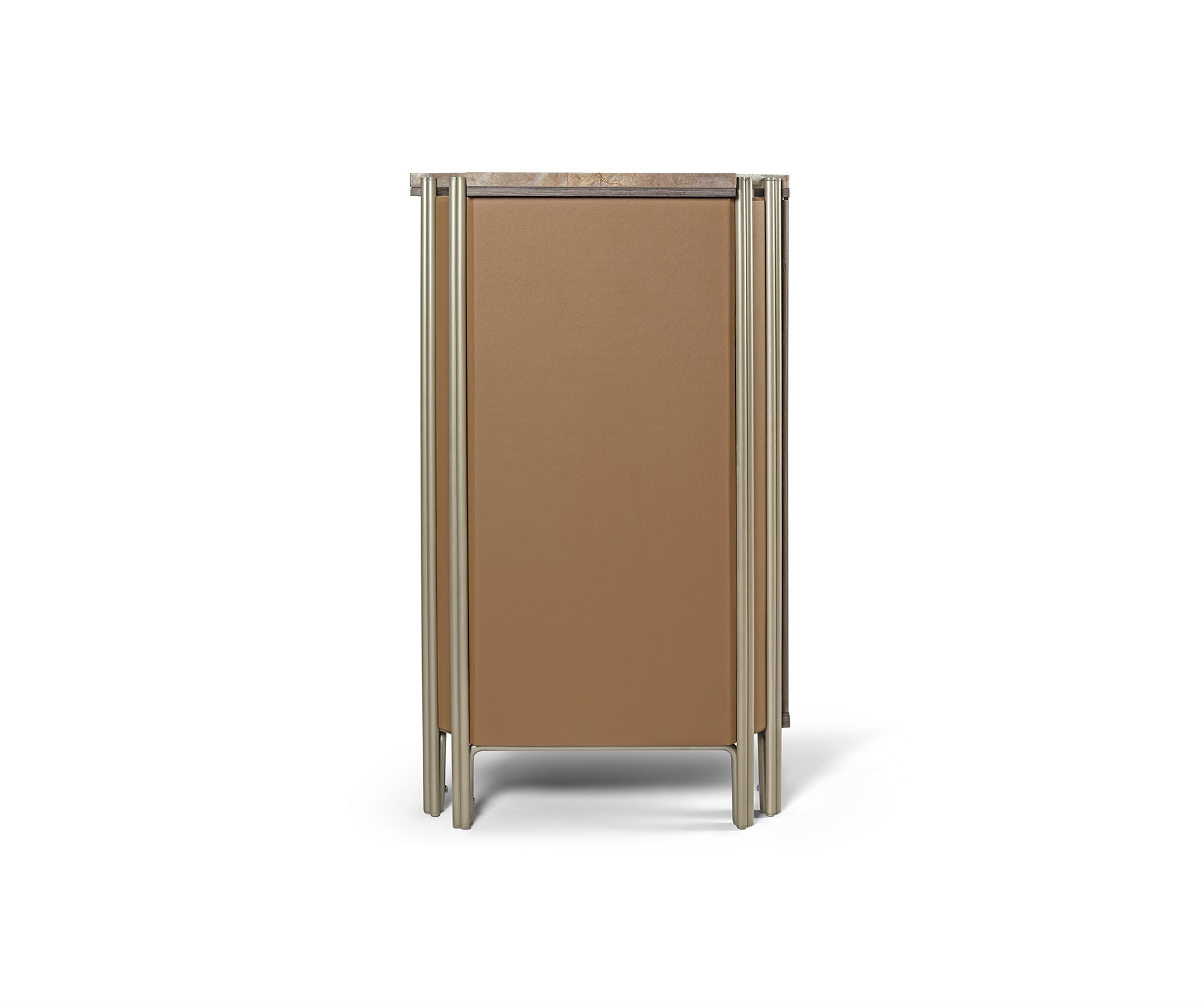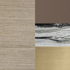 - Brushed brass handles and tubular supports.