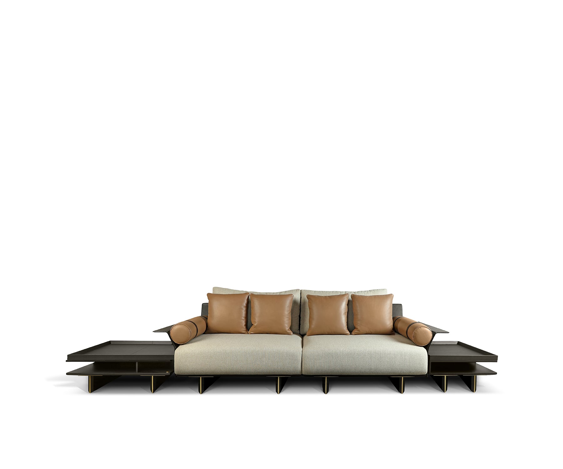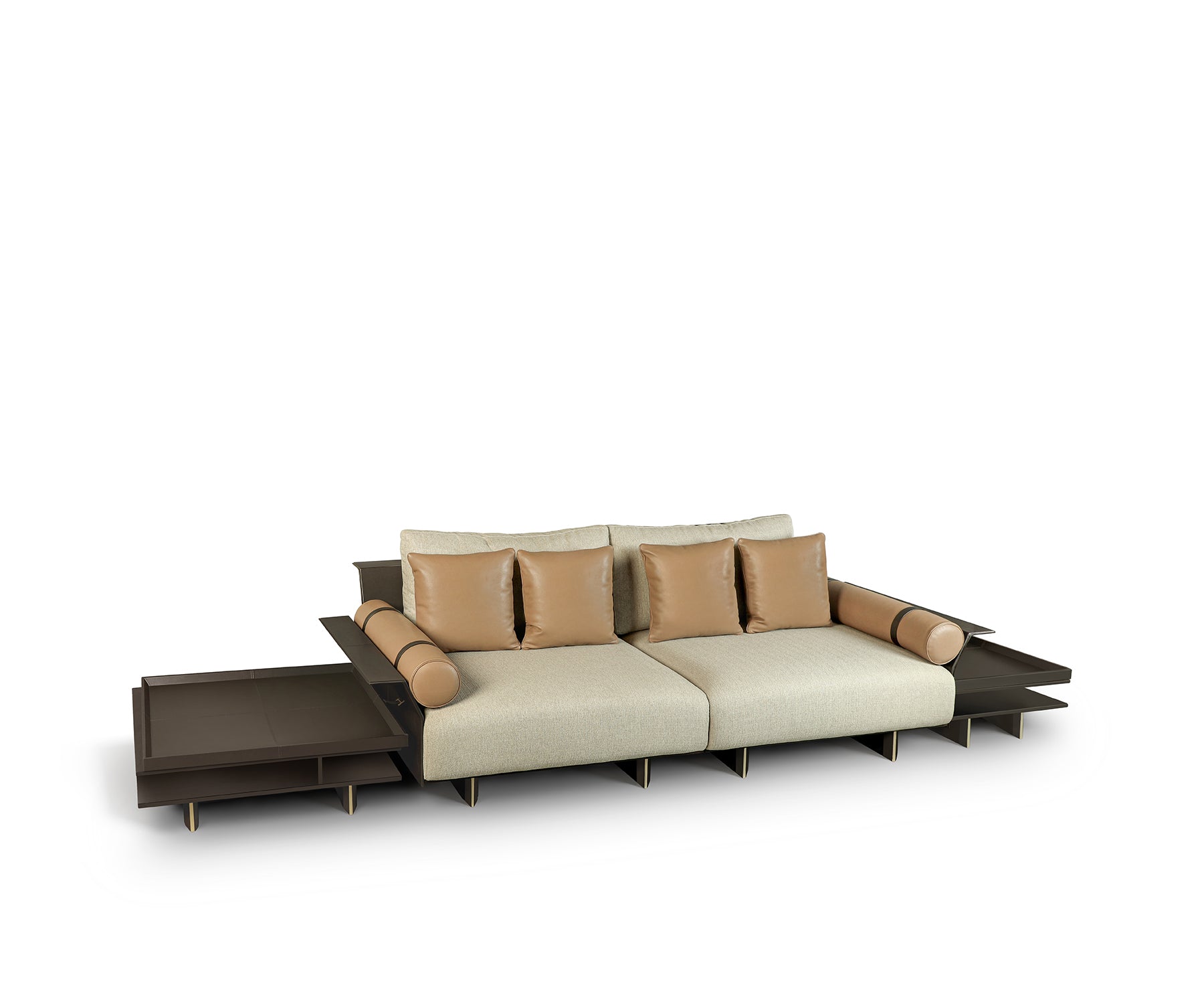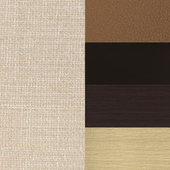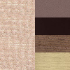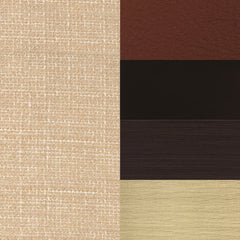 Feature Finish, Fabric Seat Linen, Leather Back Brown, Leather Cushion Miel, Veneer Dark Wenge & Medium Brushed Antique Brass