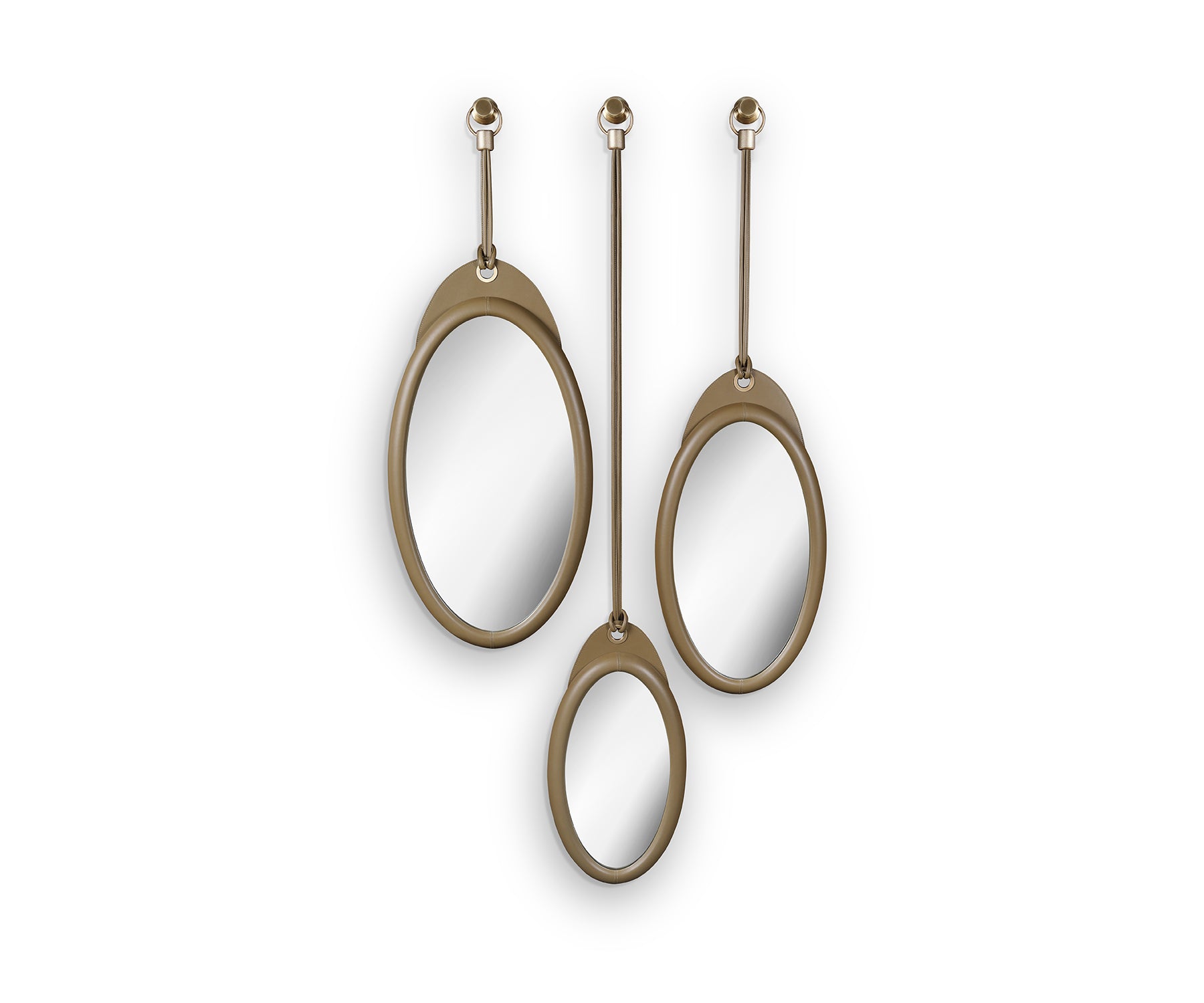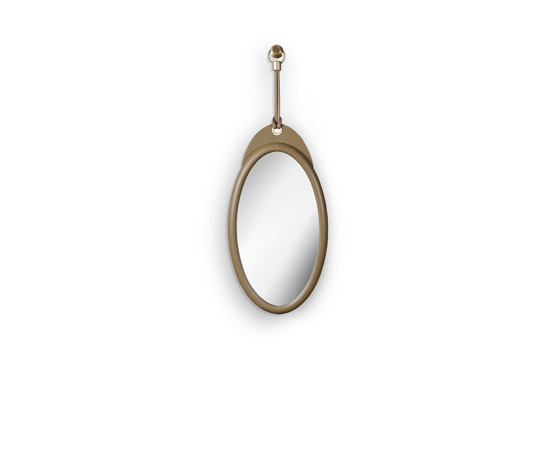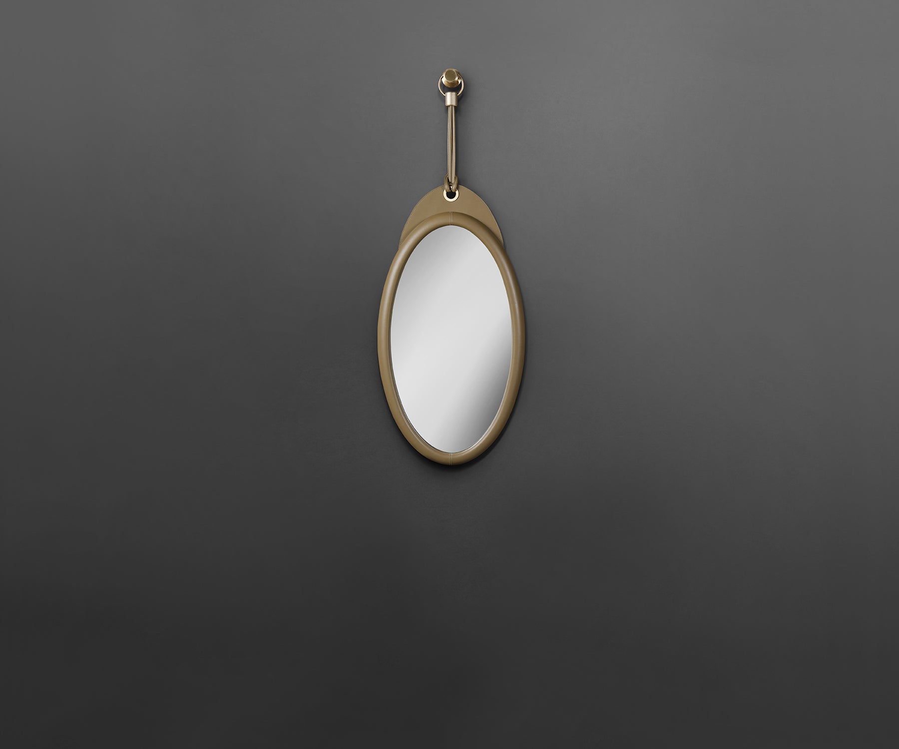 - Leather-clad mirror frame and hanging strap.