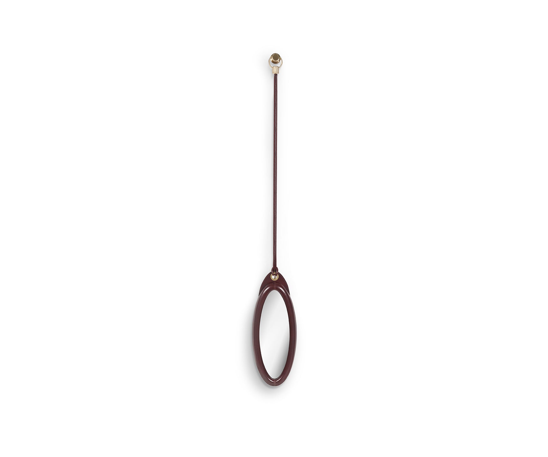 - Leather-clad mirror frame and hanging strap.