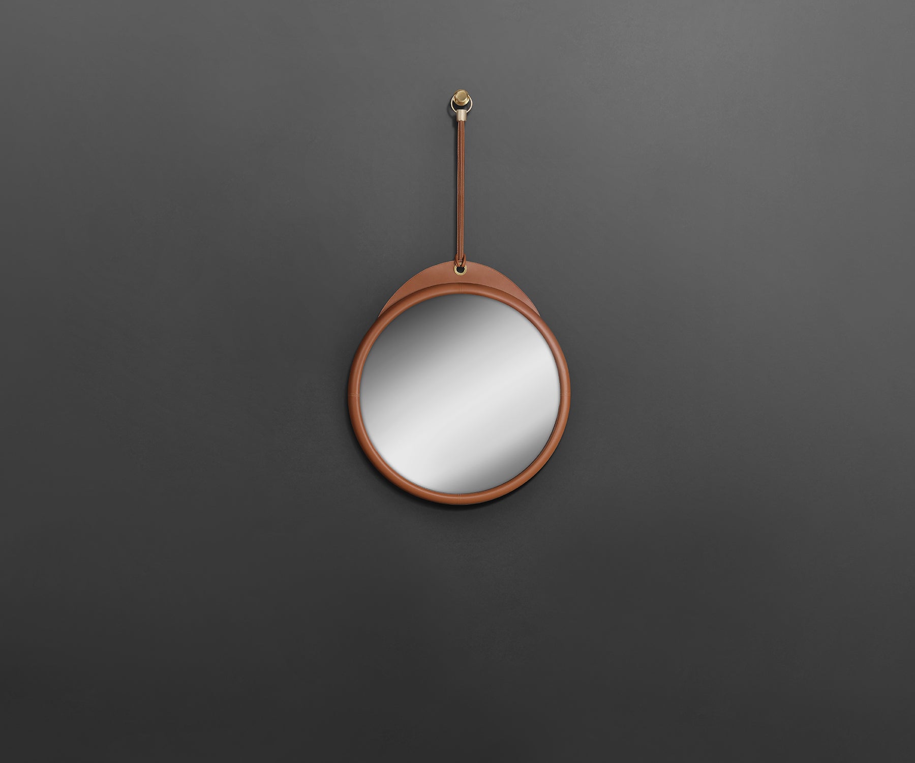 - Leather-clad mirror frame and hanging strap.