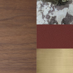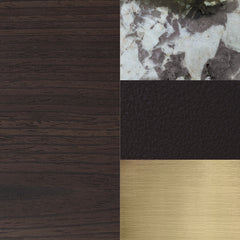 - Walnut veneer concealed bar storage with brushed brass swivel door.