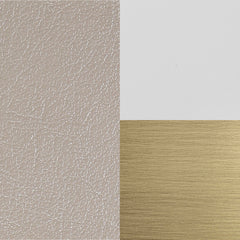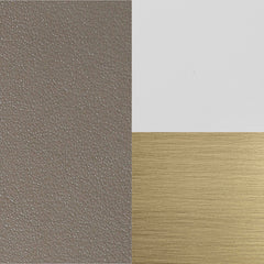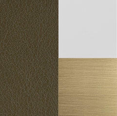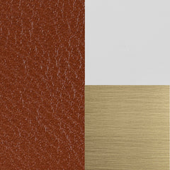 - Decorative hanging detail in brushed antique brass with leather strap.