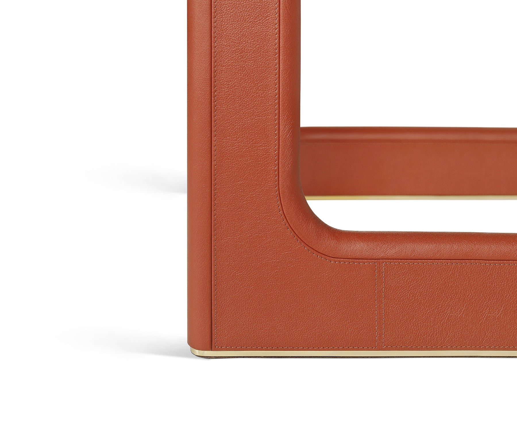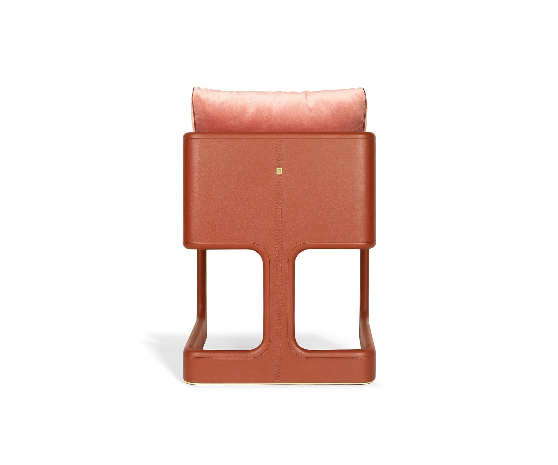 Feature Finish Fabric Seat Copper, Leather Back Marrone & Medium Brushed Antique Brass