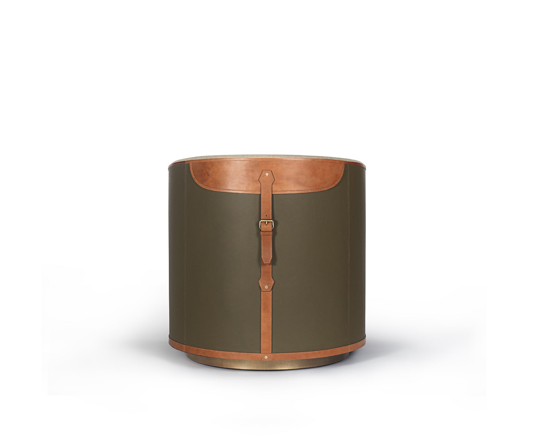 Feature Finish, Fabric Seat Hemp, Back Olive, Tan Leather Detail & Medium Brushed Antique Brass